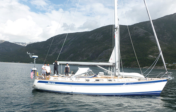 Rüzgâr yaklaşık 30 knot civarında kuzeybatıdan esiyor, seyir açısı da düzelince önce ana yelkeni 3 camadana kadar, ardından cenovayıda % 50 açtık. Zaman zaman 9.5 knot seyir hızımız keyifli geçiyor. Fiyort içinde yön değiştirdikçe rüzgâr açımıza paralel yelkenlerimizi de trim ettik sürekli. Saat 13.00’ten sonra rüzgâr 15 knot’lara geriledi ama 120 derece geniş apaz ile Full cenova ve 1. Camadan ana yelken ile 8 knot hızla ilerliyoruz. Hava açık ve güneş ısıtıyor, parçalı bulutlar semamızda şekilden şekile giriyor. Anlayacağınız keyfimiz gıcır, rüzgâr ve su sesi ile adeta rüya âlemindeyim.