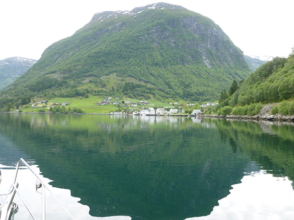 Burası 110 nüfuslu bir turistik köy ama feribot, otobüs, karavan ve teknelerle turistlerin yoğun geldikleri ve gerçekten de hak eden bir yer. Sona doğru iyice daralan fiyort içinde seyir inanılmaz keyifli geçti. Dağlar 900 metreye tırmanırken su derinliği de 200 metre civarında. Köyde iki adet otel, postane ve dükkânlar ile oldukça güzel wireless’i olan bir de kafe-restoran var. Akşam orada oturup biralarımızı yudumlarken internet bağlantımızla da mail’lerimize baktık.