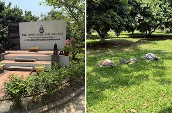 Öğlene doğru Chaudhary ailesinin sosyal sorumluluk projesi olarak kurulan kültür parkı CG Unnati Cultural Village’e geldik. Güzel bir park içinde bir sergi salonu, modern Nepal sanat eserleri, yerel sanatçılar için sanat atölye imkanları ve bakımlı bahçeler vardı.