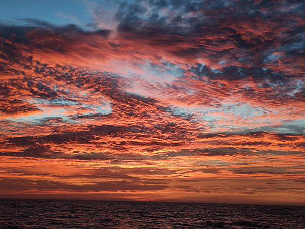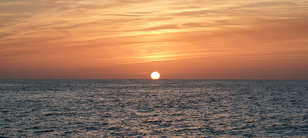 Artık alıştık sanki, yeni bir düzen oluştu. Sakin dahil rutinimizi bile oluşturduk, son gün biraz daha keyifli geçiyor. Sadece biraz fazla hızlı gidiyoruz. Kanarya adalarının en kuzeyindeki La Graciaso Adası’nın güneyindeki bir koya gitmeyi hedeflemişiz ama gece girmek istemiyoruz. Çünkü balıkçı ağlarından çekiniyoruz. Bu hızla gidersek karanlıkta gireceğiz diyerek tekneyi yavaşlatıyoruz. Böylece son gece iyice sakin ve keyifli geçiyor. Tek sıkıntı ay bulutların arkasında ve ortamda nem var. Her an her yer buğu oluyor, nöbetteki devamlı spreyhood’u silmek zorunda. Yine de bulutlar engelleyemiyor ayın ışığını. Hala çevre izlenebiliyor ve bu gece, sabah olurken ay batıdan batarken güneş doğudan doğuyor. Yani aynı anda sancağımızda ayı seyrediyoruz, iskelede güneşi… Sanıyorum bu gün doğuşu hem benim hem Sencer’in kafasına kazınacak.