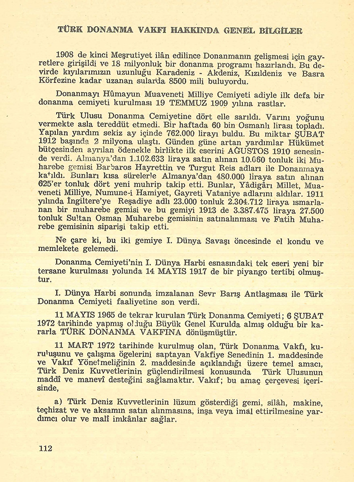12 Eylül 1980 askeri darbesinden sonra Kenan Evren ve arkadaşları tarafından kapatılan TÜRK DONANMA VAKFI YAYIN ORGANIDIR.